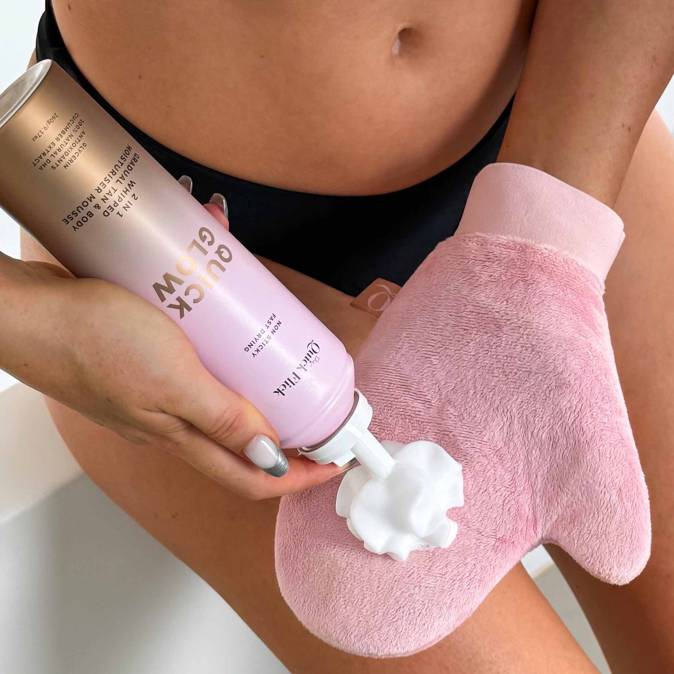 - Prep, apply, and perfect your tan with one set